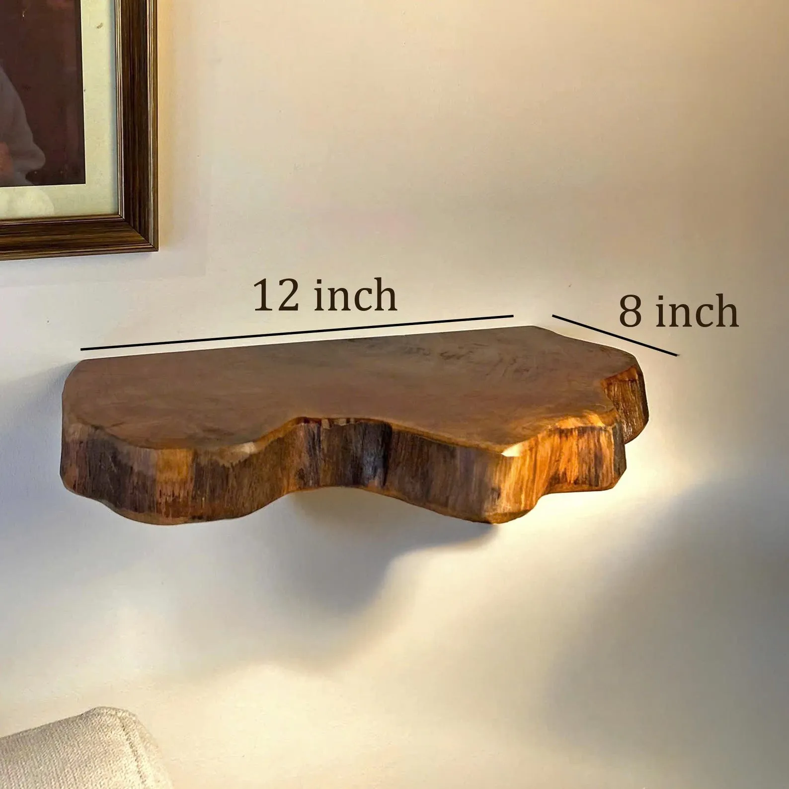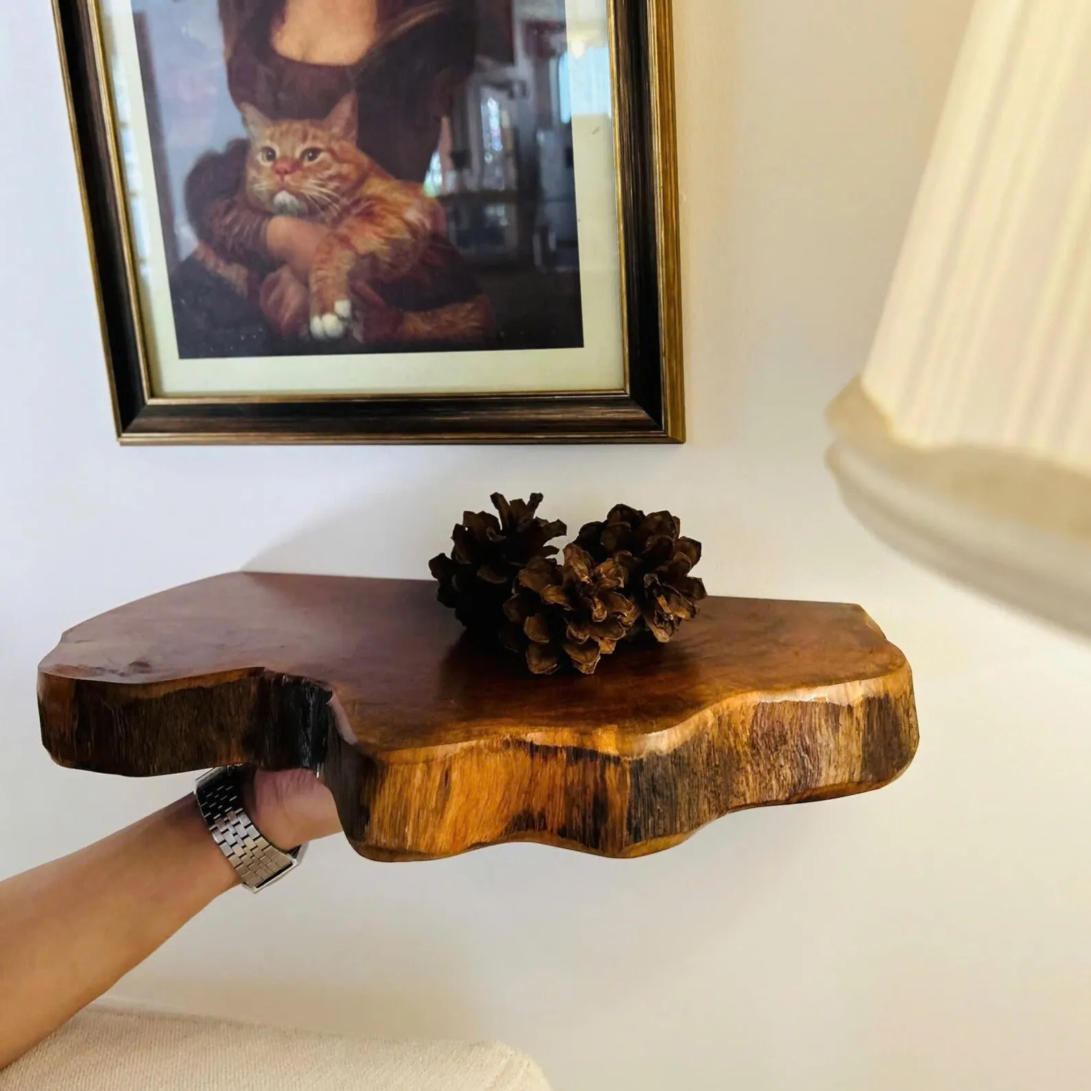 The rustic solid wood floating wall bookcase display shelf offers a clean yet character rich alternative to standard wall shelving. Designed as a horizontal branch style structure, it supports both storage and decoration in living rooms, bedrooms, studies, or entryways.