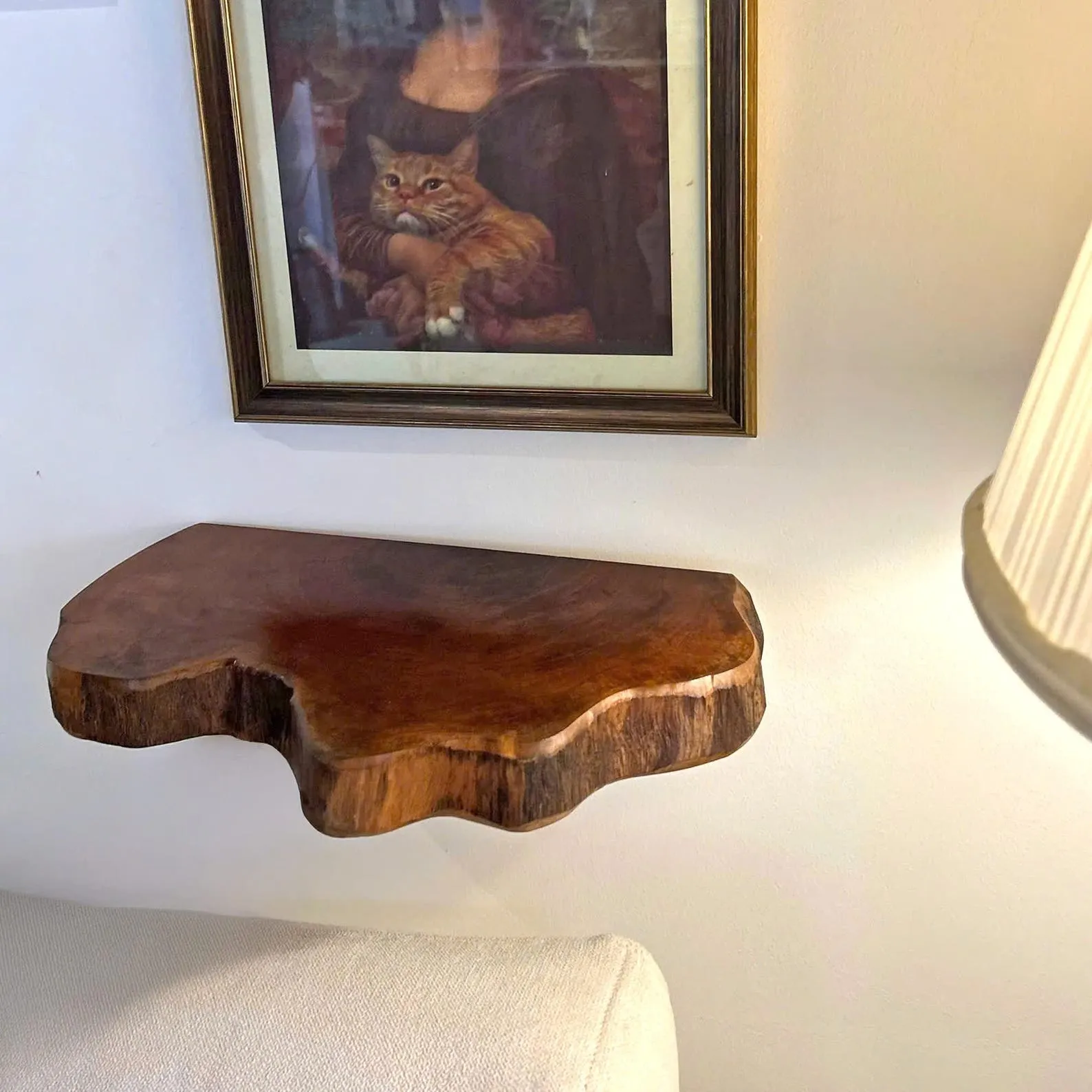 Constructed from solid wood, the shelf features carefully finished surfaces that highlight natural grain, knots, and subtle tonal shifts. These details contribute to a warm, handcrafted feel while allowing the piece to integrate comfortably with existing furniture.