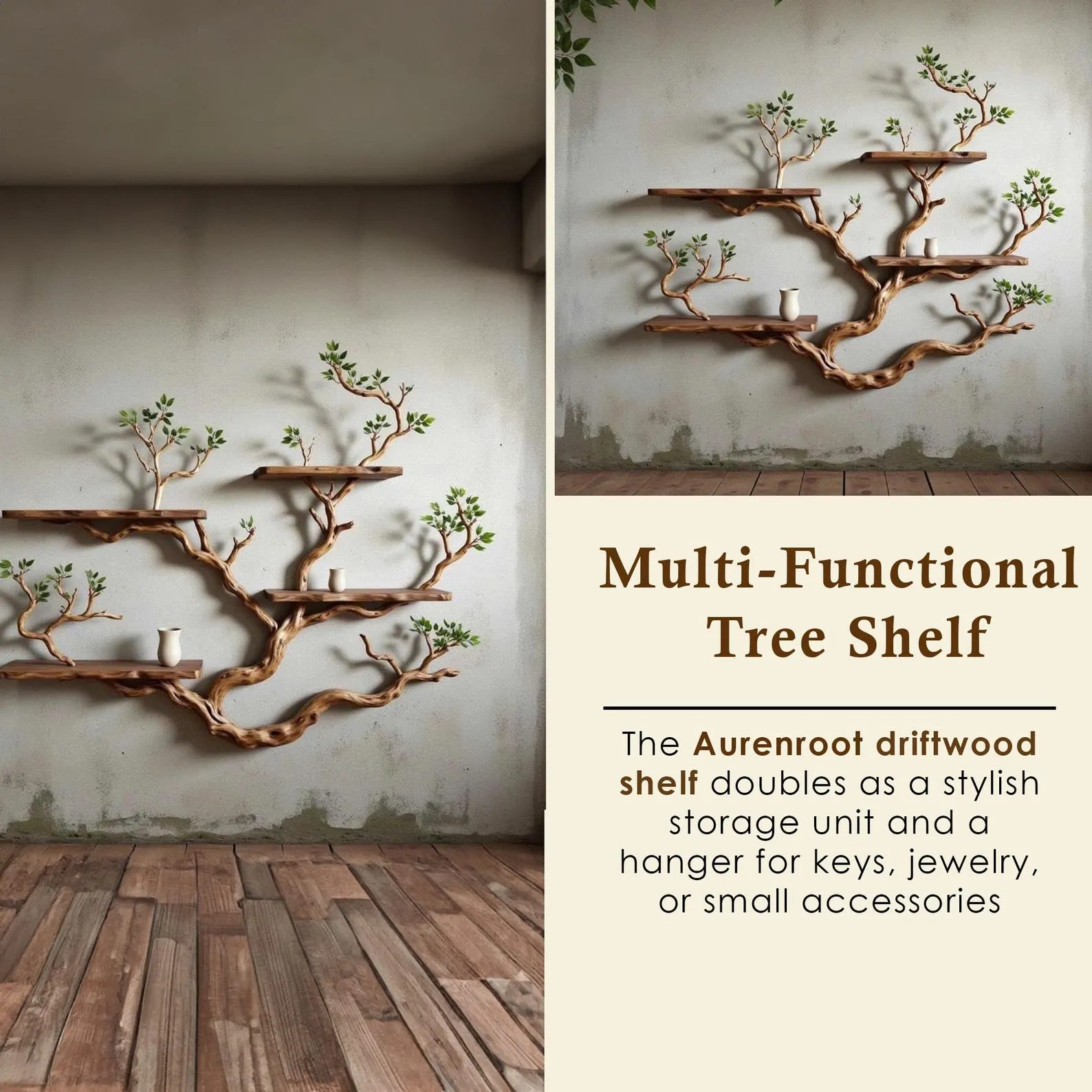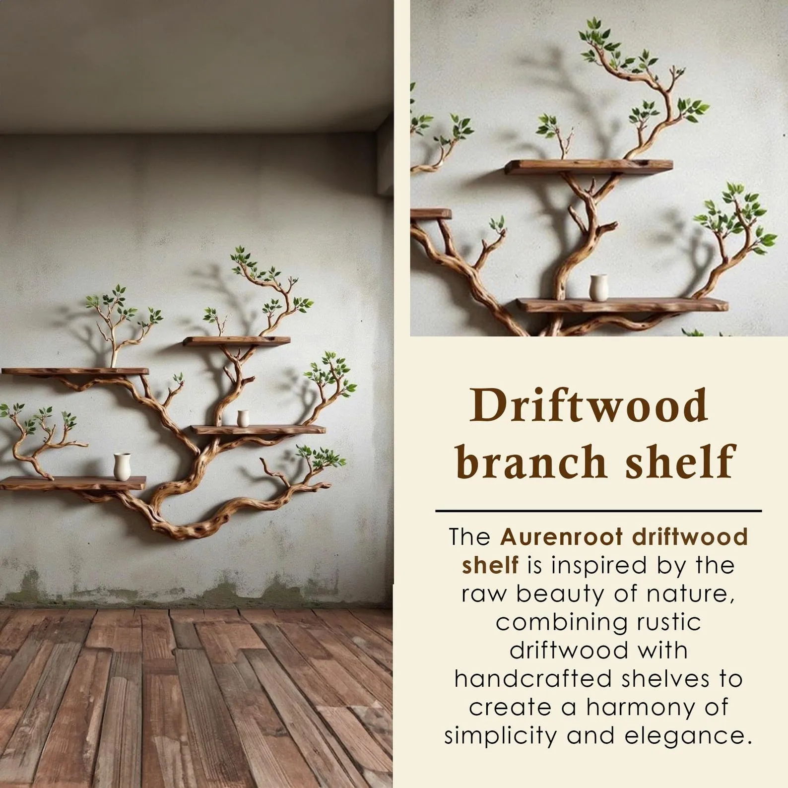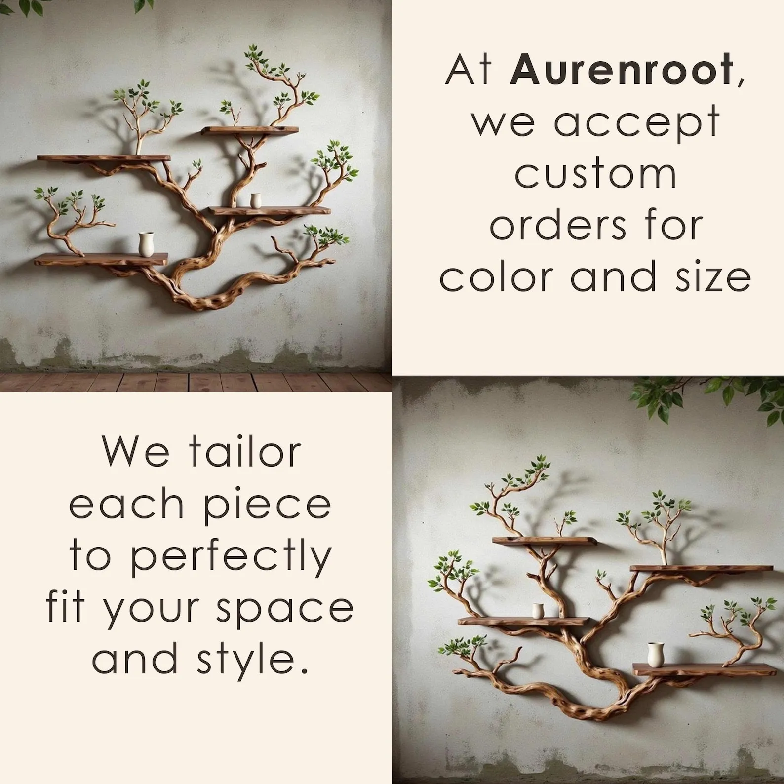 Tree Branch Inspired Floating Wall Shelves With Decorative Leaf Detail